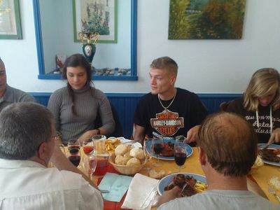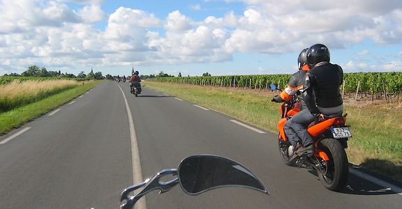 | Nous approchons de Pauillac notre terminus, un couple de motards va nous accueillir pour l'appéro et le repas | |