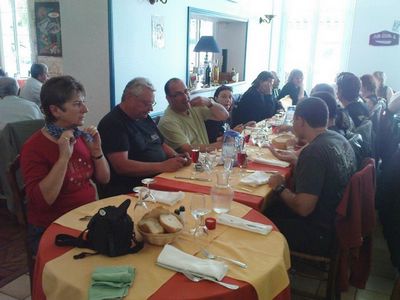 | Une fois le café avalé en route pour la plus grande étape de la rencontre... 60 kms (oui c'est long je sais) Est-ce parce que nous avions bien mangé et que nous dormons à moitié que nous trouvons le temps long? Ou alors nous avons perdu l'habitude. |
