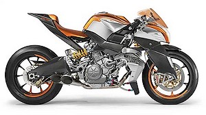 | L'Aprilia FV2 2007 se veut un vrai concentré de technologies, une vitrine du savoir-faire transalpin. Bourrée d’électronique embarquée, ce prototype accueille un V-Twin ouvert à 90° de 1 196 cm3 développant 134,5 ch à 9 500 tr/mn pour 10,5 Mkg à 4 000 tr/mn de couple. Pis ! Elle ne pèse que 160 kg à sec |